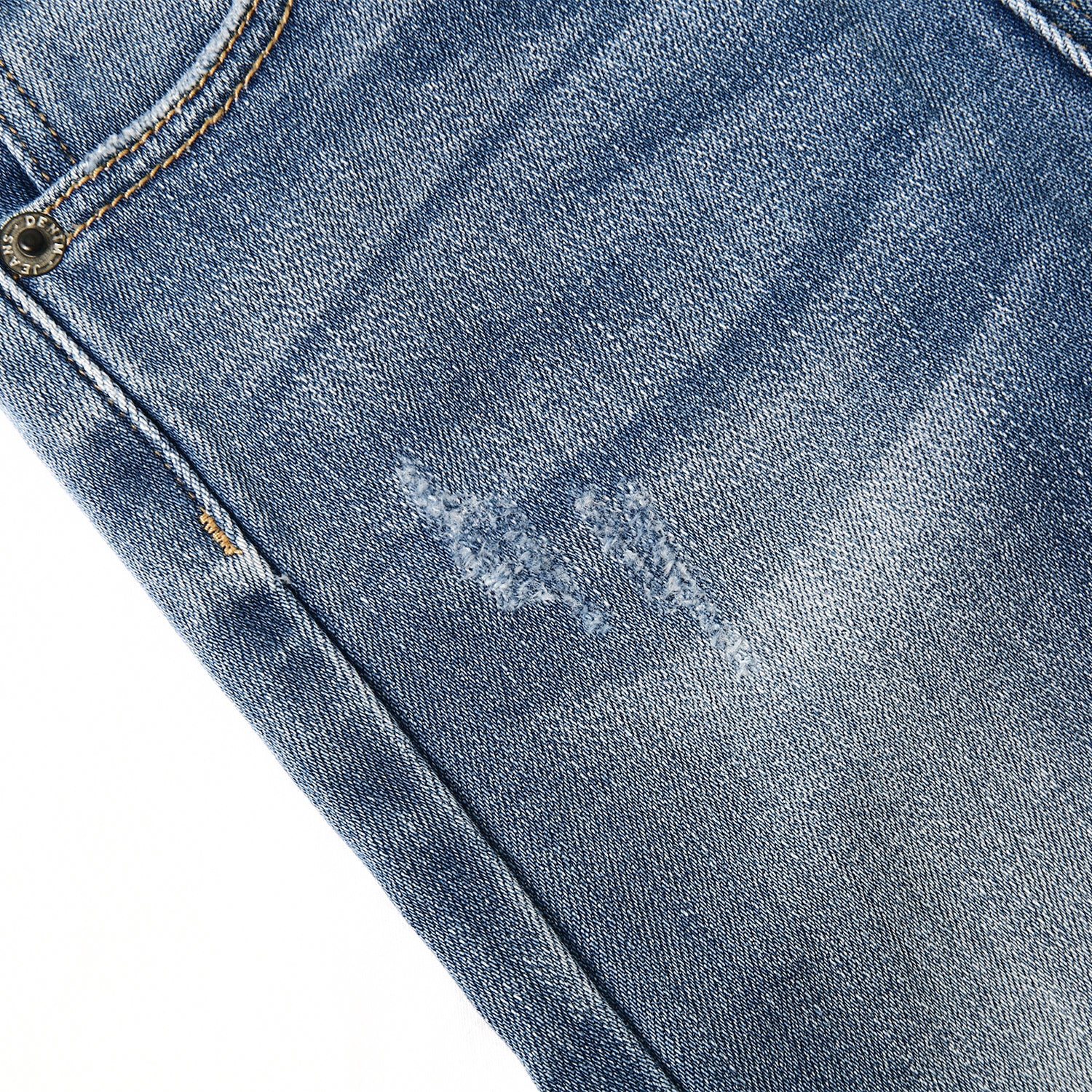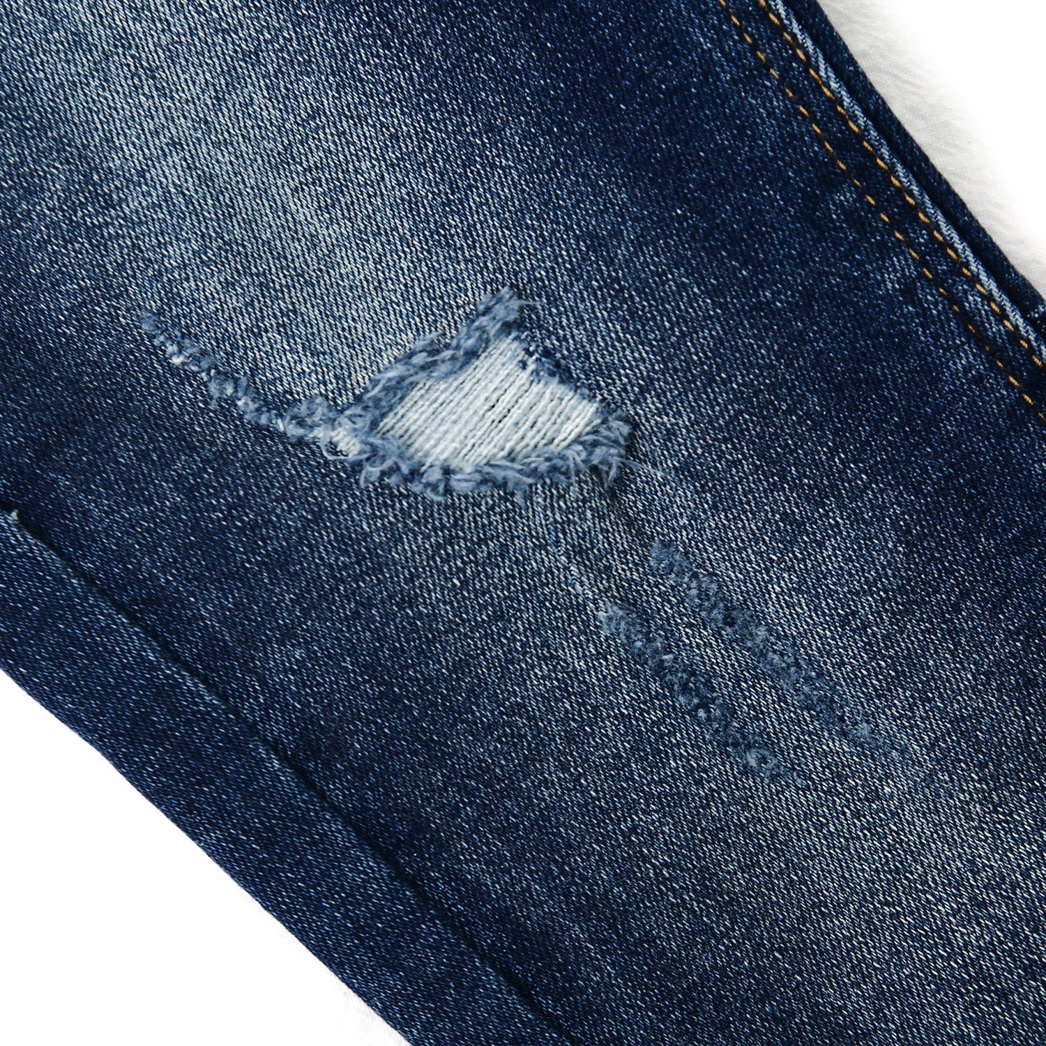 • Ruffled waist,diagonal pocket,simple ripped fashion design casual stone washed denim jeans