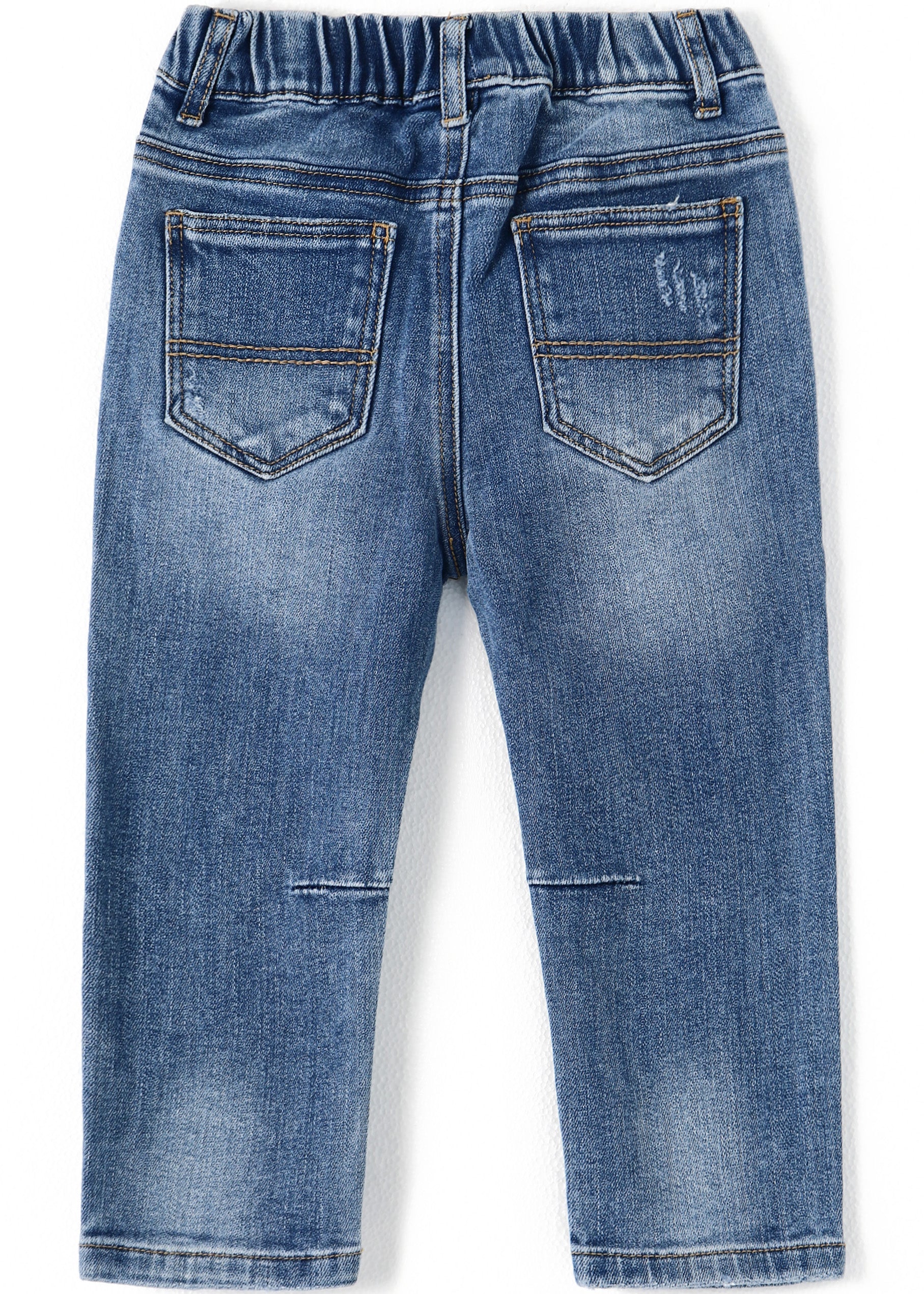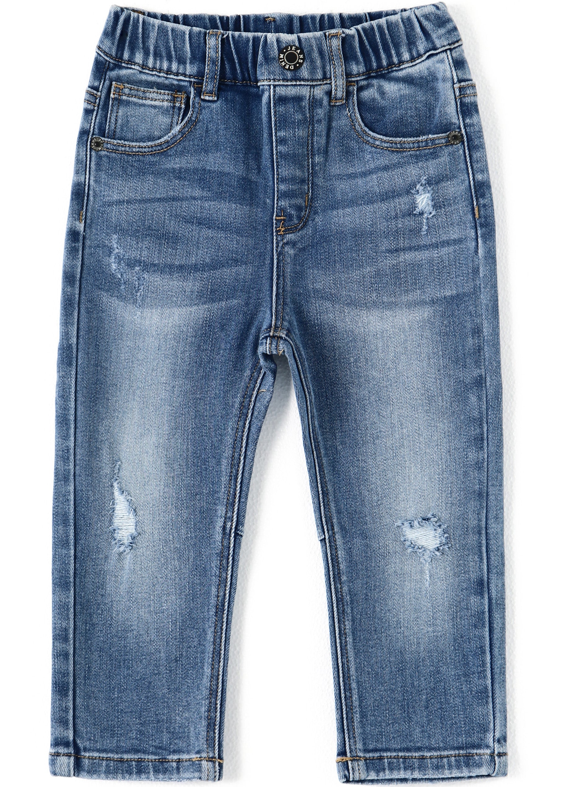 • Ribbed elastic waist for easy wearing, pull on denim fashion for baby & little child