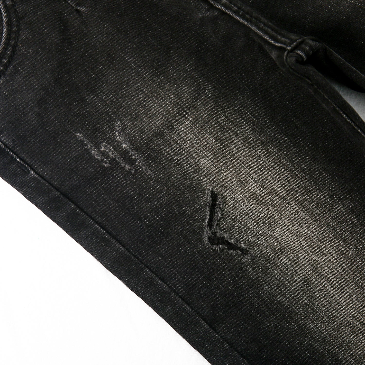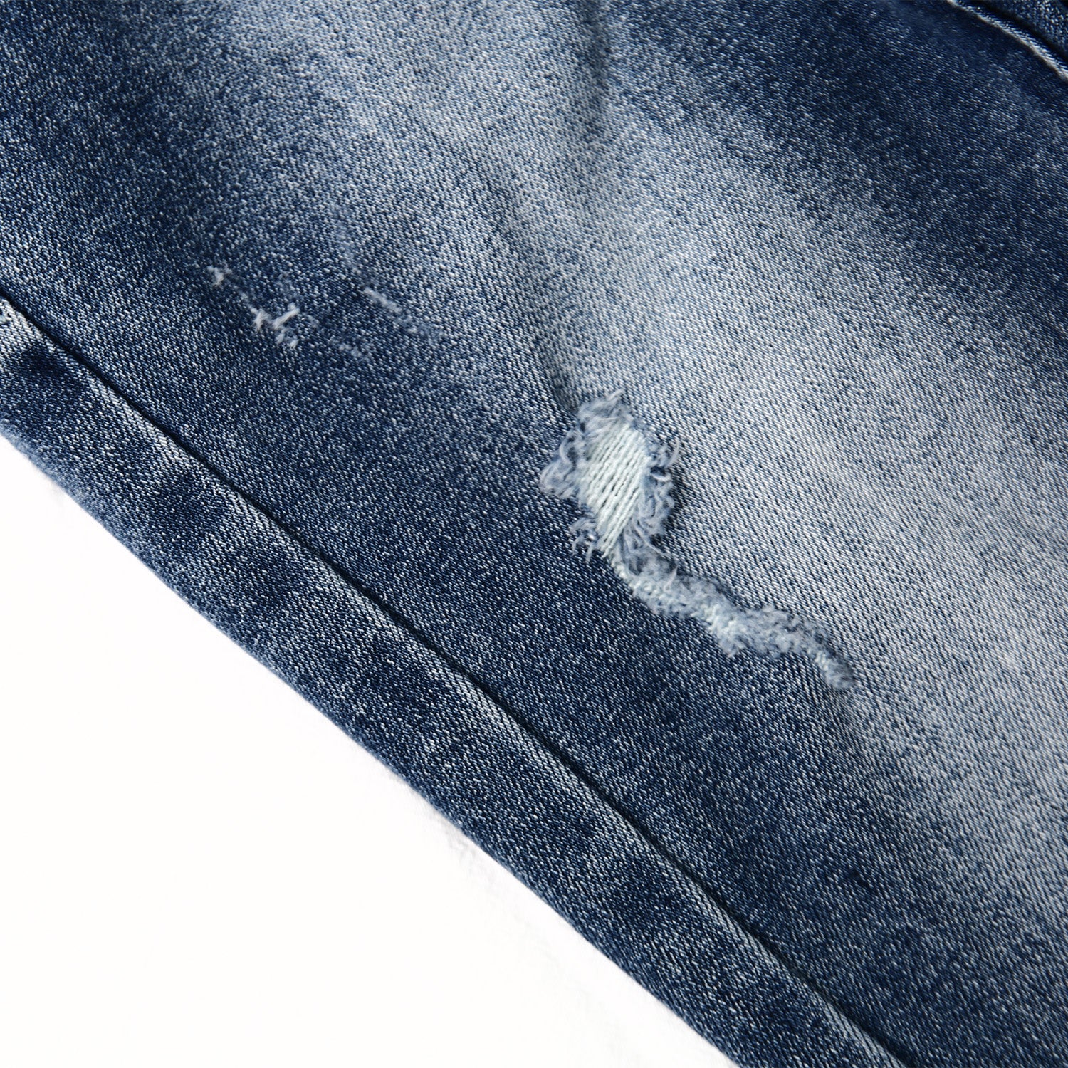 • Ruffled waist,diagonal pocket,simple ripped fashion design casual stone washed denim jeans