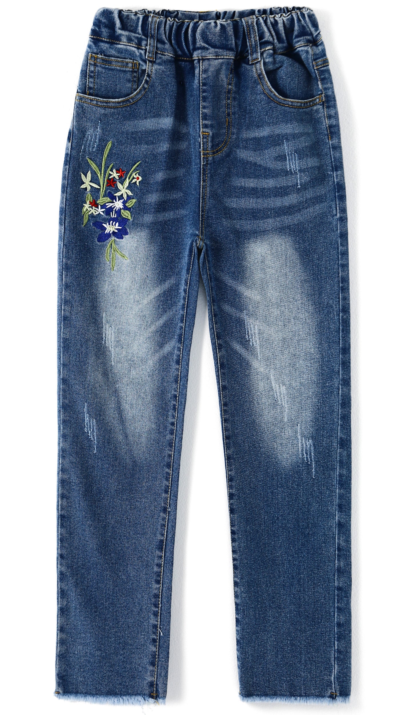 4-12T Girls Jeans, Ribbed Elastic Waist Embroidered Denim Pants