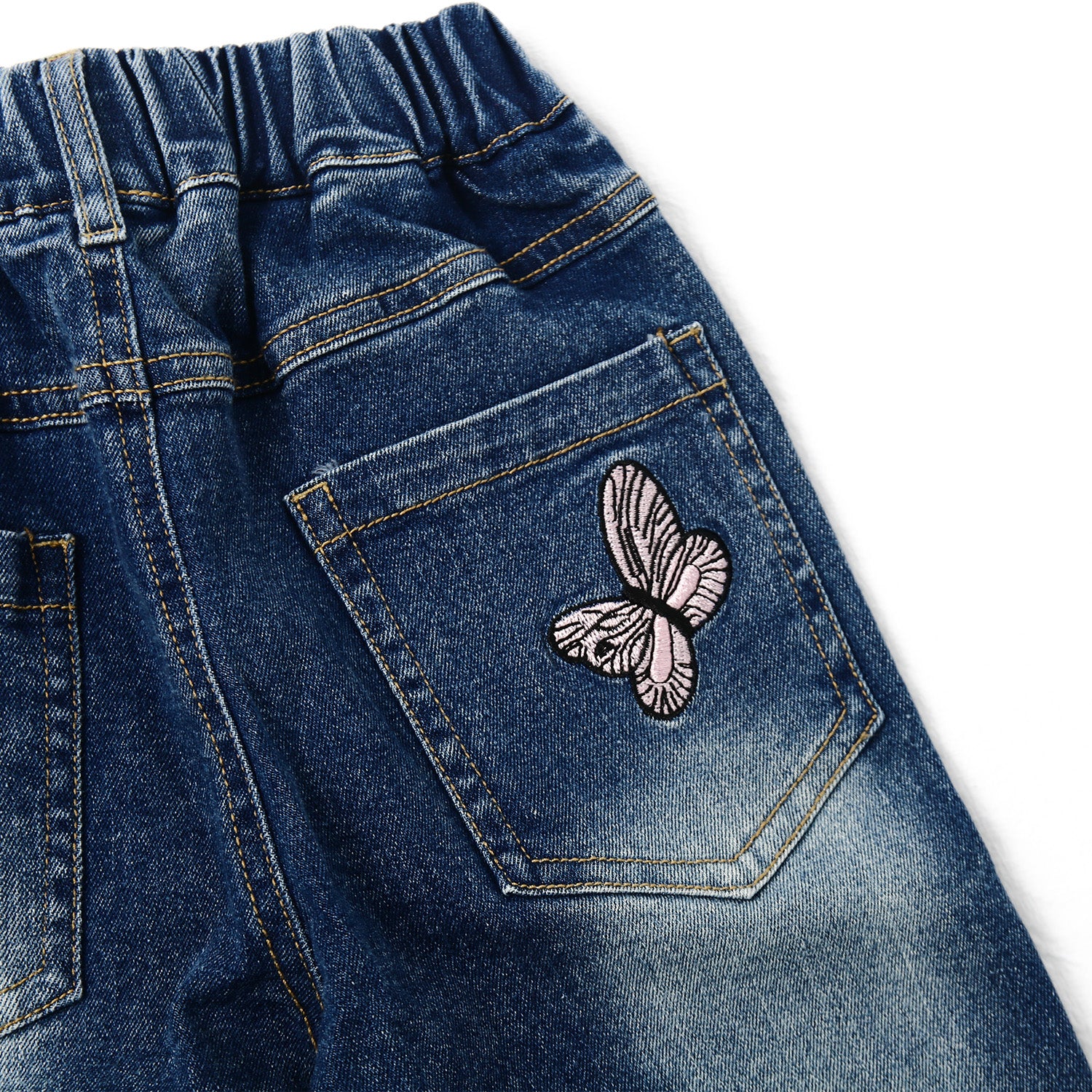 4-15T Girls Jeans, Ribbed Elastic Waist Embroidered Denim Pants