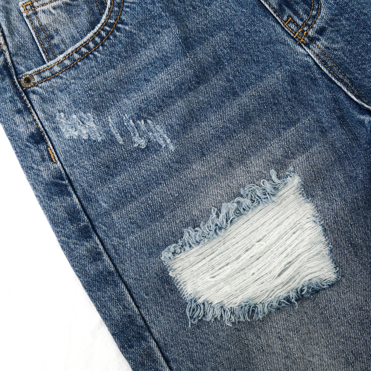 6-14T Girls Jeans,Elastic Band Inside Ripped Holes Denim Pants