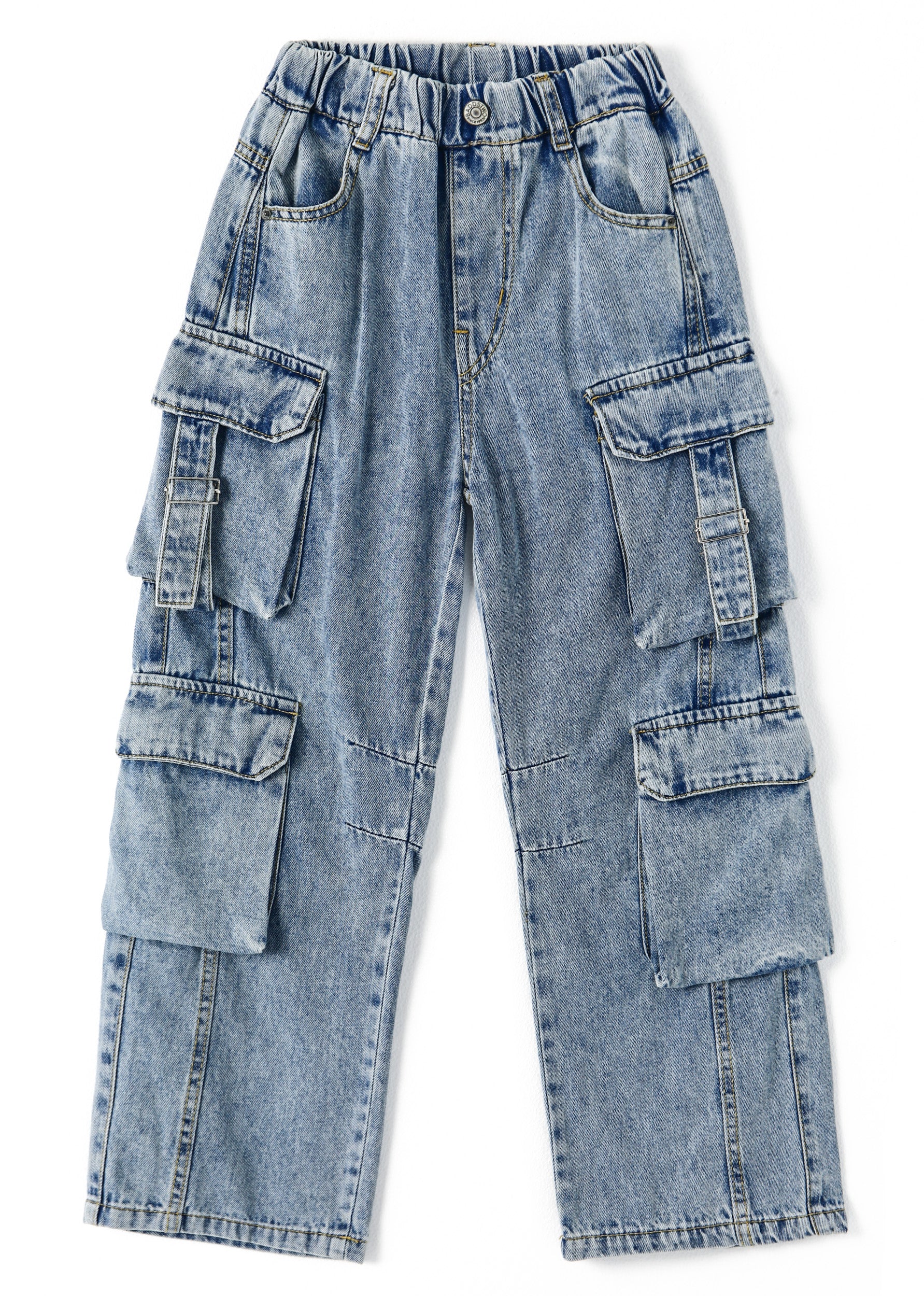 • 8-Pocket cargo jeans,available in a wide sizes range bottoms, ribbed waist with D-ring loops jeans palazzo pants