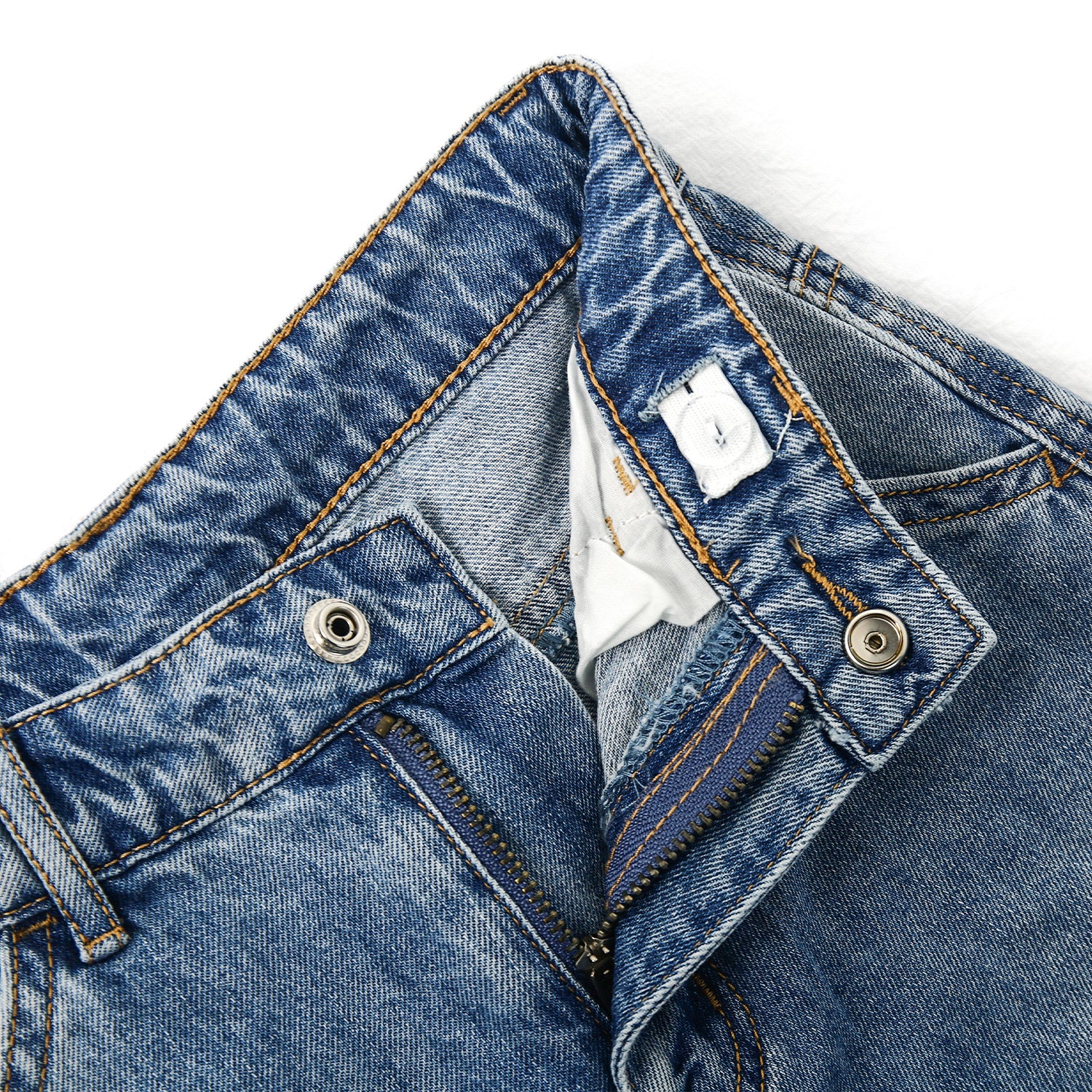• Elastic waist band inside provides a comfortable and adjustable fit ,slanted pockes,relaxed-fit flared denim trousers